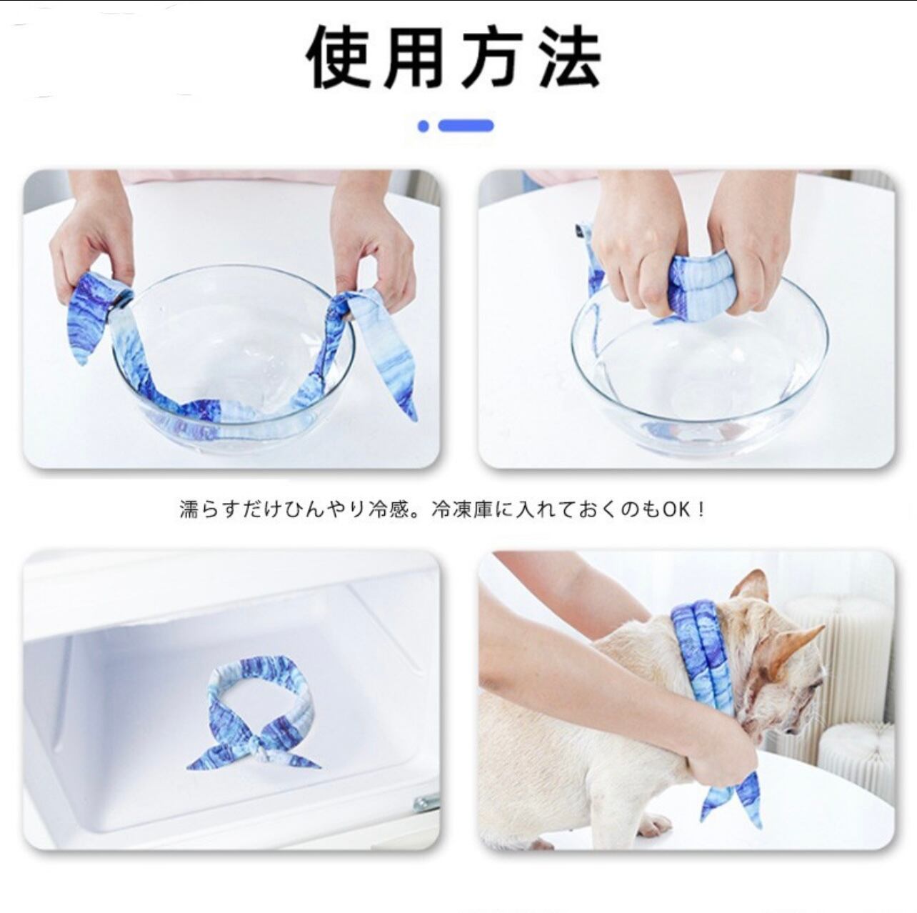 ☆愛犬の熱中症対策にぴったり。冷却用アイススカーフは涼しげな生地でできており、首筋に巻いて、さわやかな快適で感じがします。